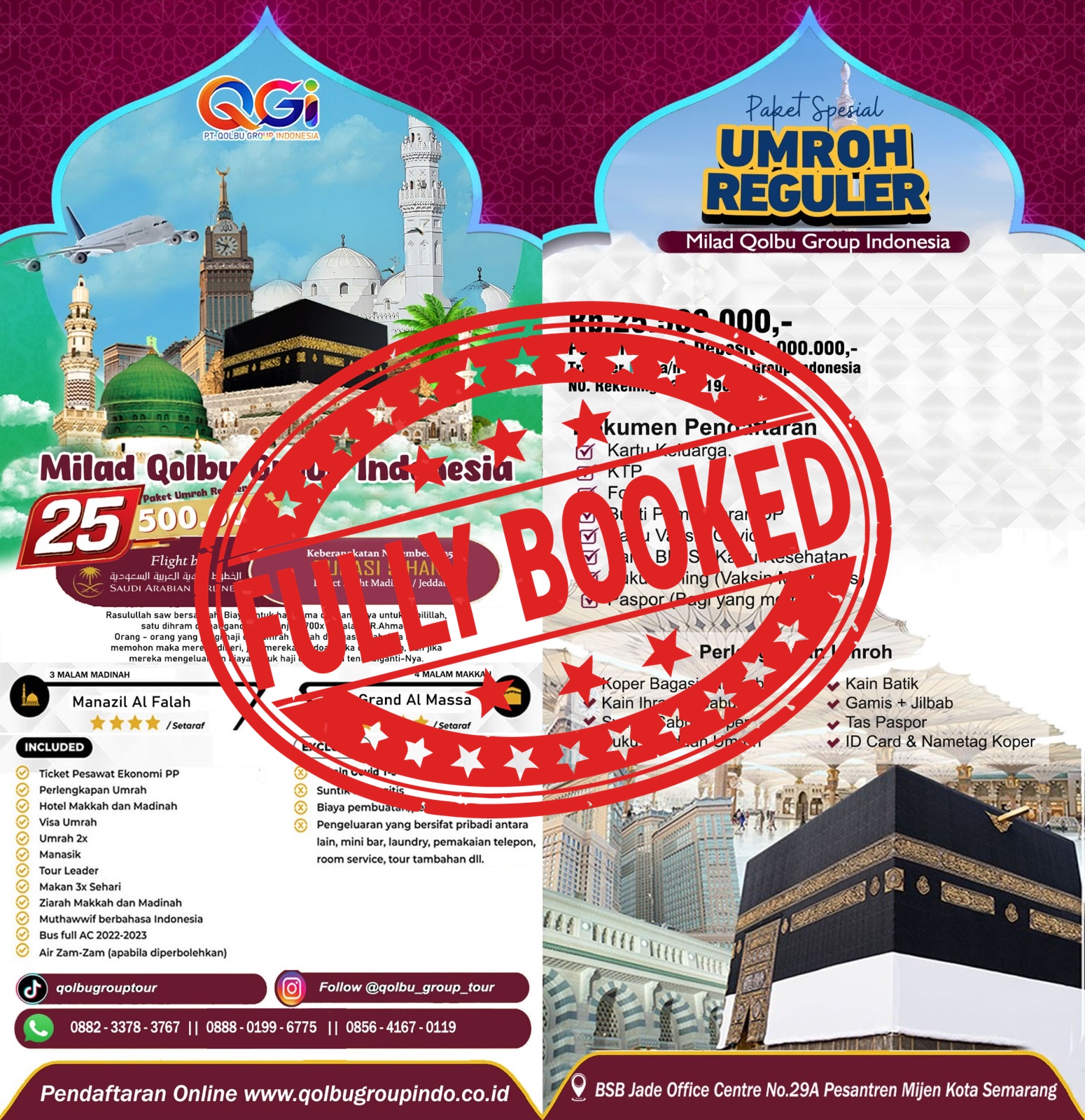 Paket umroh spesial milad Qolbu Group Indonesia hanya tersedia untuk periode tertentu dengan kuota terbatas. Oleh karena itu, kami mengajak calon jamaah untuk segera melakukan pendaftaran agar tidak kehabisan tempat.
